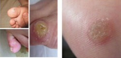 2、硬鸡眼好发生的部位是足掌底部或者小脚趾的外侧,表面是光滑的或者微微隆起,边界显得很清楚,当去掉外层除去角质后,可以发现里面使有个坚硬的核心,和豆粒大小差不多,其产生的症状为疼痛和发炎。