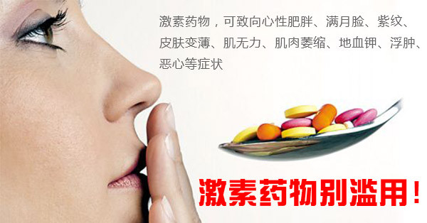 许多非正规的医疗机构,往往以激素药物治疗皮肤过敏,激素药物可快速压制皮肤过敏症状,产生病情好转的假象,却完全无助于患者脱敏。